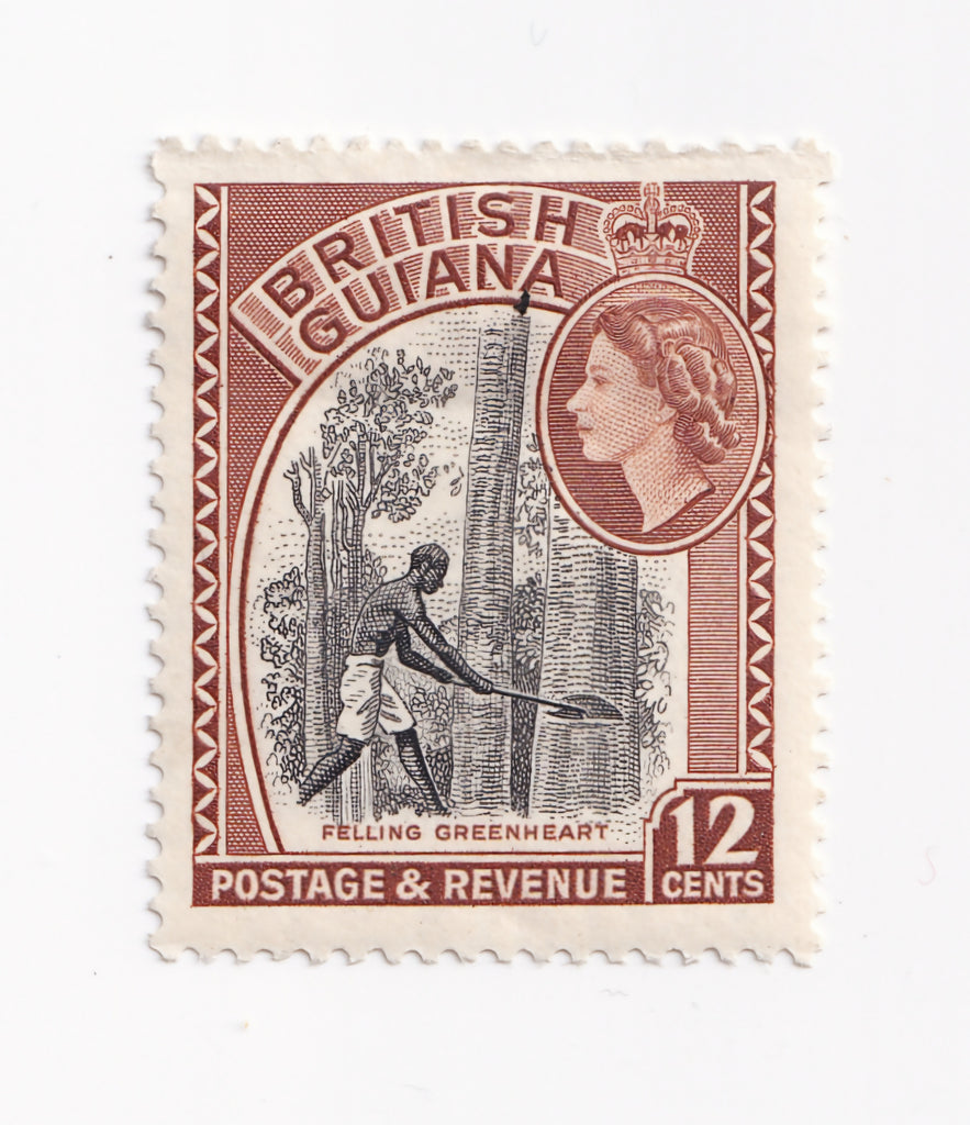 British Guiana Stamp 1954. Felling Greenheart Tree. Sg: GY 338. Mint Hinged